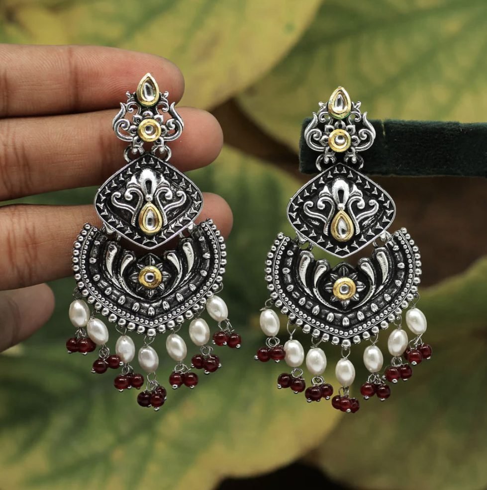 Maroon Color Stone Oxidised Dual Tone Earrings AJP2023-22