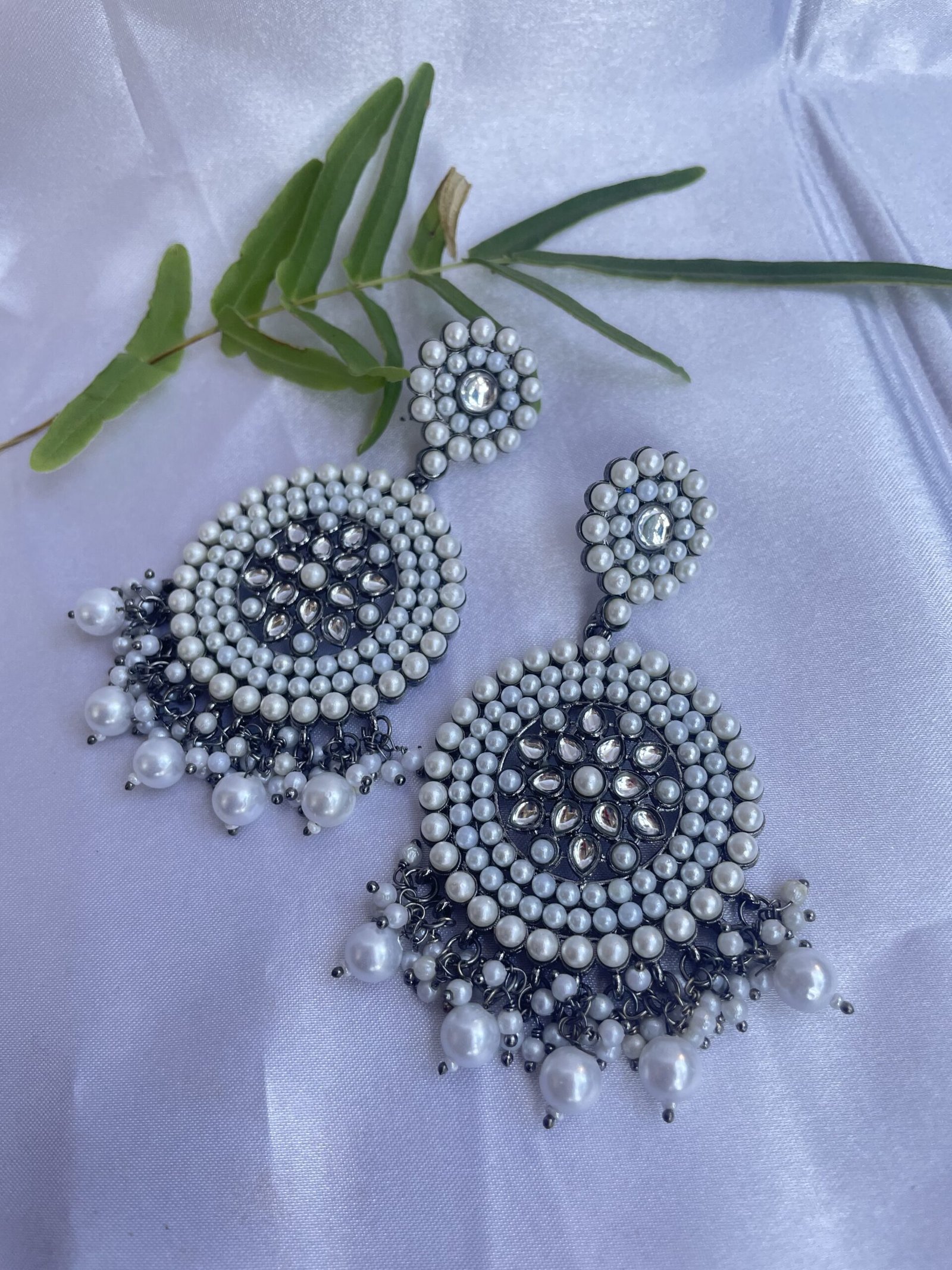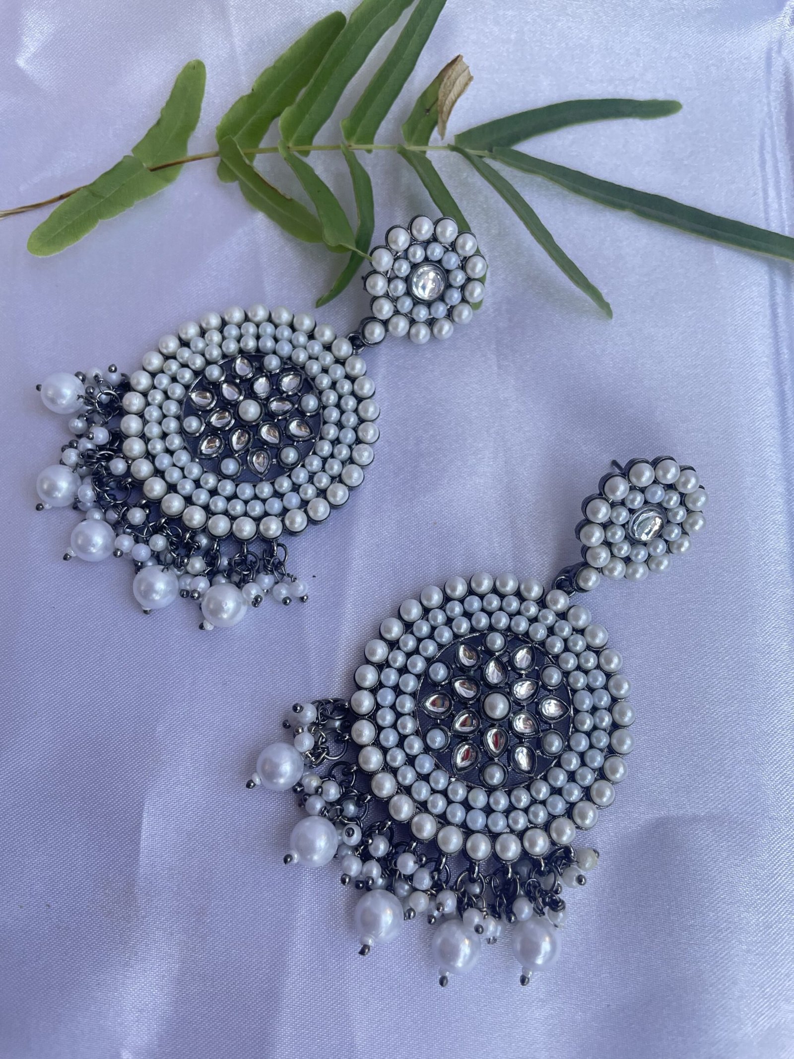 Oxidised Black Metal Kundan Jhumka Chandbali AJP2022-37